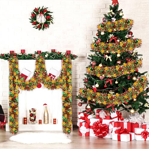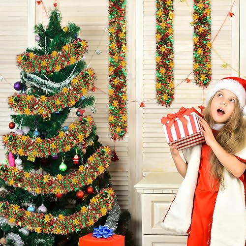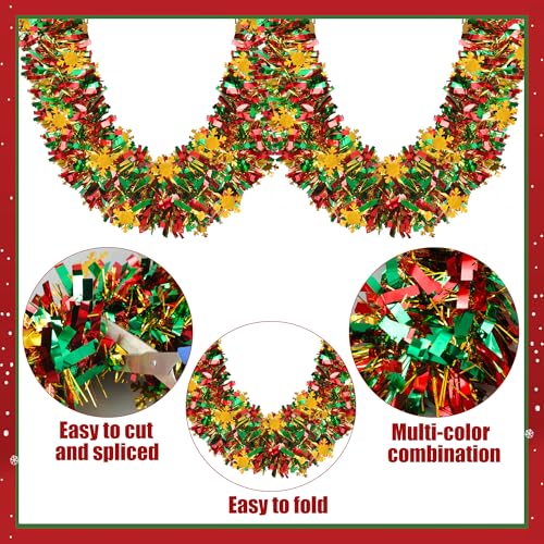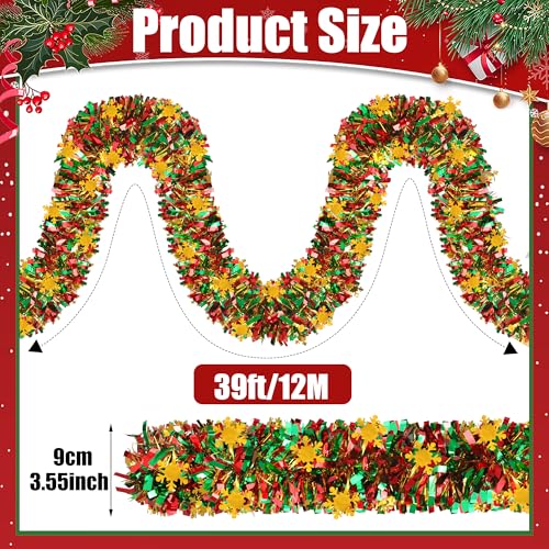 Packaging and size: You will receive 1 set of green red gold metallic tinsel twist garland. The metal foil has a size of 39.3 feet/12m (length) X 3.5 inch/9cm (width), which is sufficient to meet your needs for Christmas decoration.