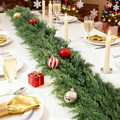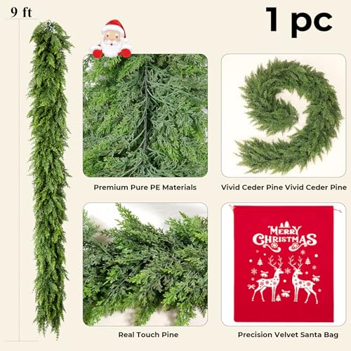 Lush and Thick Christmas Garland Decorations: Different from other sparse Christmas garland, our leaves are 2 times as thick as the usual ceder garland, the perfect length allows for generous coverage to embellish large area or combine multiple pieces for a fuller look. Flexible wire branches allow custom shaping, while built-in hooks simplify hanging. Transform your home into a Christmas sanctuary with our realistic Christmas Ceder Garland!